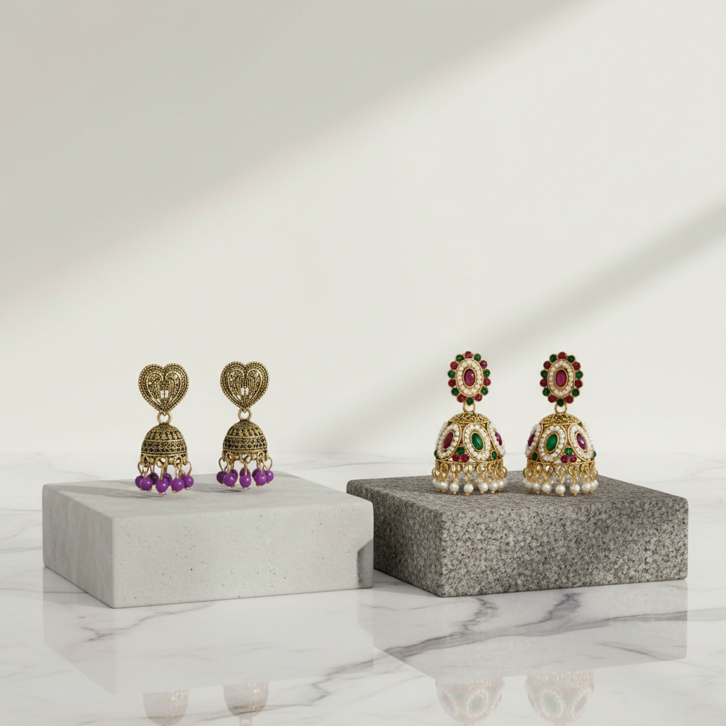 The Heritage Chronicles: Dual Artistry Jhumka Suite (set of 2)